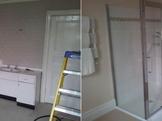This lovely character bathroom had a dated bathroom suite, we replaced the entire bathroom, capped off the old iron pipes, relayed the floor, the small loo had been leaking for years and the floor underneath was literally rotten. We replaced the structural timbers and made good, installed a new pan to the existing old waste pipe.